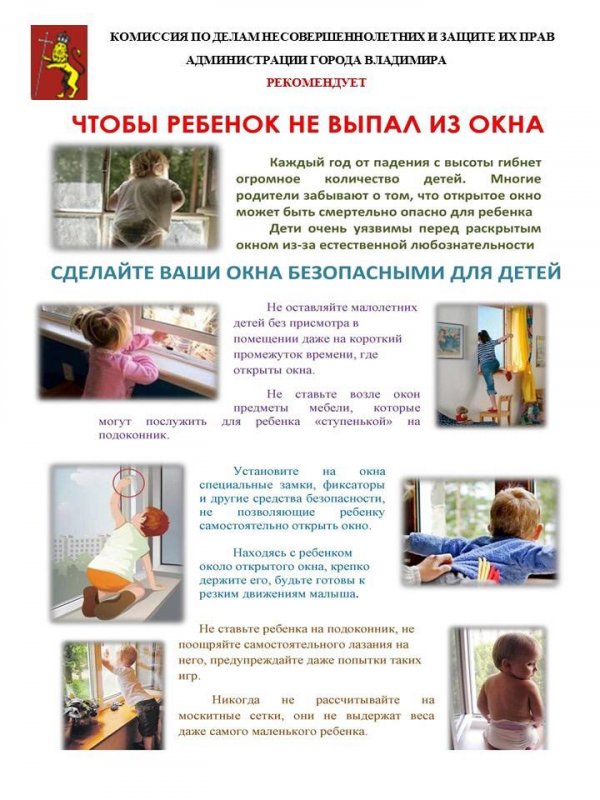 - не держите окна открытыми, по возможности открывайте их только в режиме проветривания, осуществляя постоянный контроль за действиями ребенка;