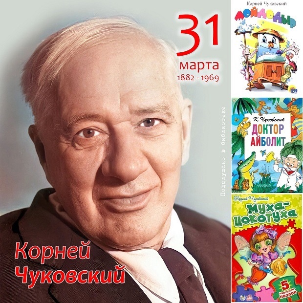31 марта – день рождения Корнея Ивановича Чуковского – замечательного русского писателя, классика отечественной детской литературы, на чьих стихотворных сказках выросло не одно поколение нашей страны. Стихи и сказки Корнея Ивановича Чуковского любят и знают дети во всём мире. Он создал особый мир и язык поэзии. У Чуковского посуда убегает из дома, крокодилы гуляют по улицам, а добрый доктор летит в Африку спасать зверей и непослушных детей. В сказках Корнея Чуковского ребёнок найдёт равного себе собеседника, который расскажет ему, что добро и справедливость всегда побеждают, почему стоит слушаться родителей, зачем нужно соблюдать правила гигиены, прилежно учиться и сопереживать другим людям и животным.