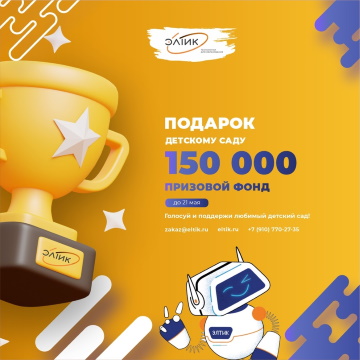 Дорогие друзья! Мы рады сообщить вам о запуске благотворительной акции «Подарок детскому саду» от компании «ЭЛТИК». В рамках данной акции мы запускаем голосование среди всех жителей города Владимира. Три детских сада, которые наберут наибольшее количество голосов, получат ценные подарки от нашей компании на общую сумму 150 000 рублей.