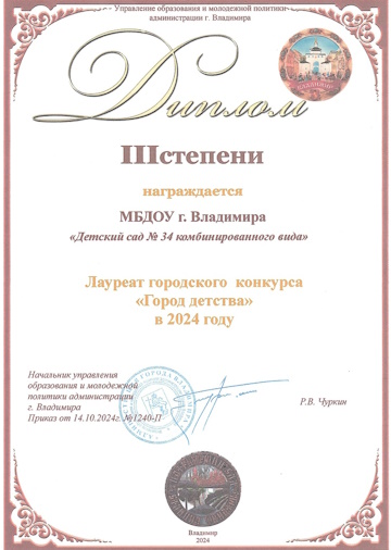 19 ноября в Патриаршем саду состоялось торжественное поздравление победителей конкурса "Город детства 2024". Наш детский сад стал лауреатом III степени.